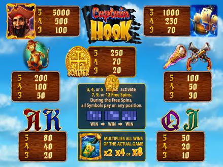 CAPTAIN HOOK is a video slot game, controlled by random numbers with five rotating reels